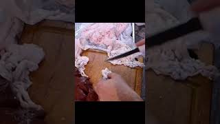 Wrapping lamb liver into caul fat for BBQ