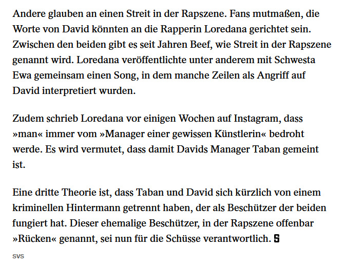 Der Spiegel hat sich, wie ihr unten lesen könnt, mit Freude in die Mutmaßungen geworfen, Shirin postete vielsagende Dinge, dass sie vielleicht wisse, wer das getan haben könnte. Ich habe keine Ahnung. Ich finde aber die Formulierung 'zwischen den beiden gibt es seit Jahren Beef, wie Streit in der Rapszene genannt wird' herzallerliebst.