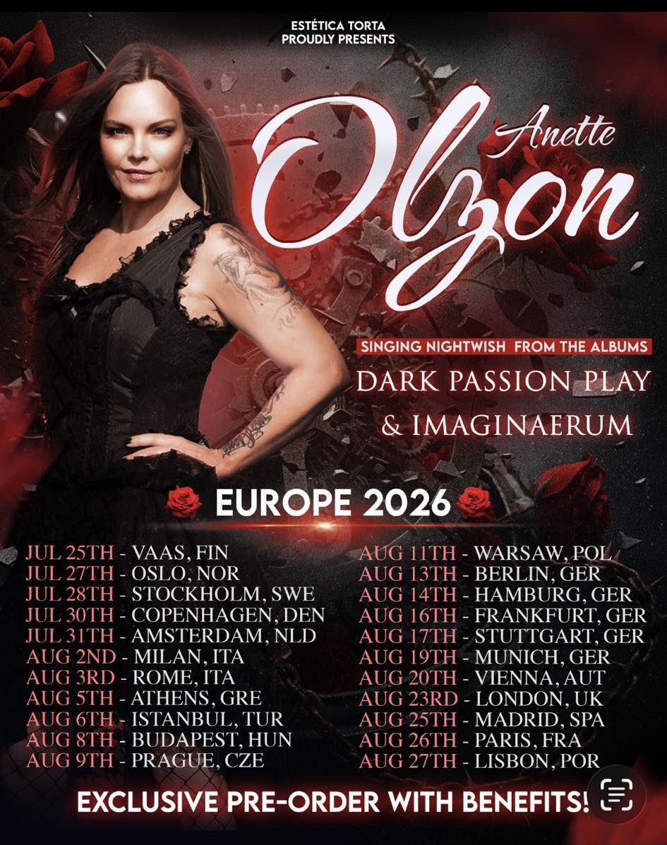 Die Termine und Städte für die Tour stehen schon fest, nicht jedoch die genauen Locations. Bis zum 20. Februar läuft eine besondere Vorverkaufsphase, während der Fans zu ihrem Ticket noch eine signierte Postkarte dazubekommen. Erst wenn diese Phase abgeschlossen ist, will Olzon die Venues bekannt geben – vermutlich, um zu sondieren, wie hoch das Interesse ist. Im deutschsprachigen Raum plant sie aktuell sechs Konzerte.
