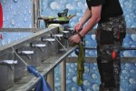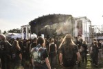 Neben der holländischen Hardcore-Fraktion gibt es unter anderem Powerwolf, Destruction und eine unverhoffte Reunion der schwedischen Kult-Deather Vomitory zu bestaunen. Zum Glück hat der nächtliche Dauerregen den Erdboden vor der mittlerweile ins Freie verlagerten T-Stage schon mal ordentlich aufgelockert, sodass die ersten Circlepits auch gleich ihre ersten Matschflecken auf den frisch in Festivalshirts eingekleideten Besuchern hinterlassen.